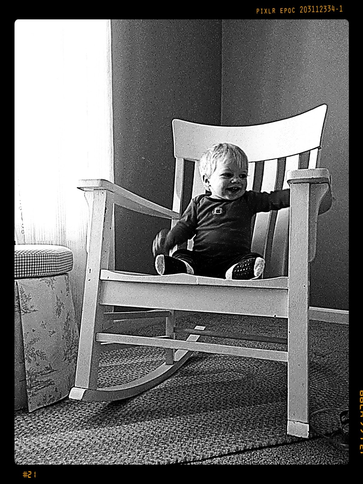 Grant happily climbed around on the antique rocking chair from my parents.